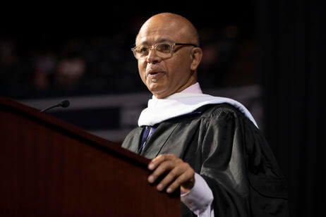 In his remarks to graduates, his first as College president, Rougeau used the analogy of the Holy Cross tradition of opening doors for others to encourage graduates to continue to embrace their faith in God, in progress and in humankind.