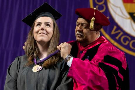 Friday morning’s ceremony not only capped four years on Mount St. James, but also a week of celebrations for seniors, including the Phi Beta Kappa induction and senior awards ceremonies, the Baccalaureate Mass, the Mosaic Graduate celebration and the Last Sunset on The Hill event, where families and friends met one more time with their students, soon to be alumni, on the Hoval, a student-favorite spot on campus.