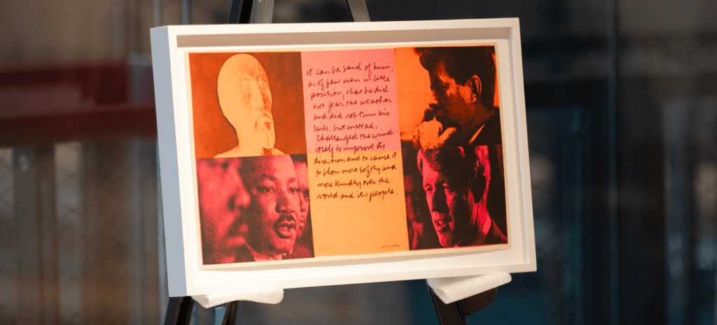 In spring 2025, Bertram and 9 other students in the course Art Now! Contemporary Activism in Art and Museum Collecting, became acquisitions managers for the College’s Iris and B. Gerald Cantor Art Gallery, researching, evaluating and, ultimately, purchasing contemporary art for the gallery’s permanent collection. Melissa Geisler Trafton, visiting lecturer of visual arts and art history, and Lauren Szumita, director of the Cantor, taught the course, which acquaints students with every step of the process museums go through in purchasing art for their collections. Students worked with a budget of $10,000, offered by an alum to purchase three fine art prints: “it can be said of them” (Corita Kent, 1969), “Slave Ship” (Romare Bearden, 1972), “Untitled (Stamps)” (Barbara Kruger, 1990/2013).