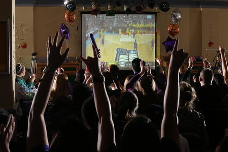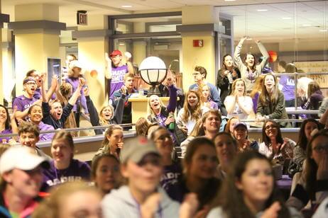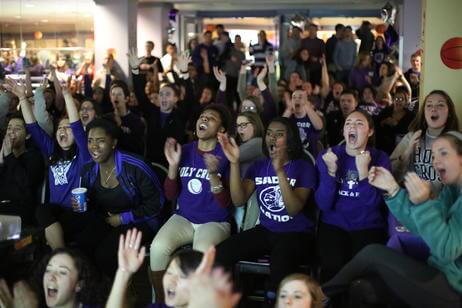 From Worcester to Boston, New York to Chicago, alumni, family and friends cheered on the Crusaders at more than 15 official watch parties. On campus, 350 students packed into an overflowing Crossroads to root for their Crusaders on the road.