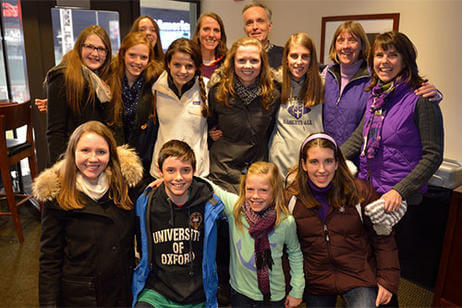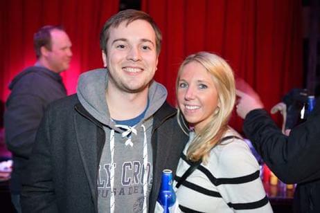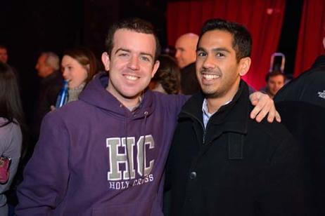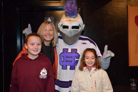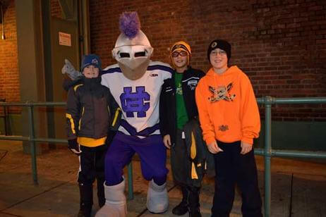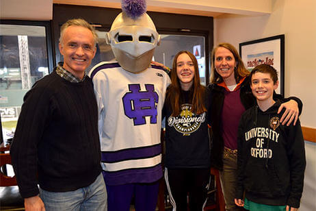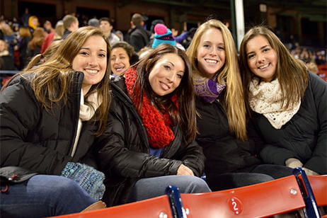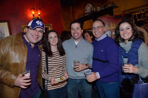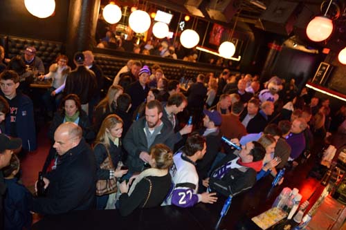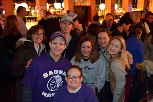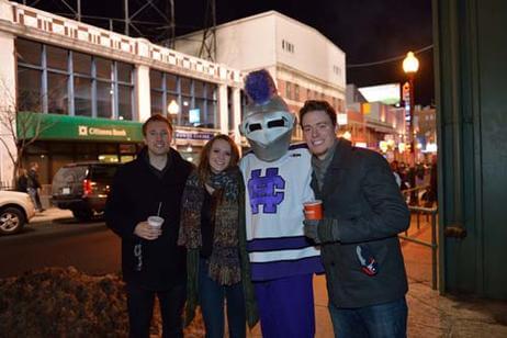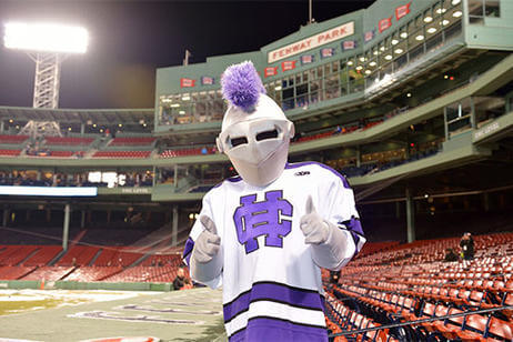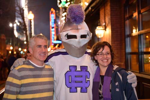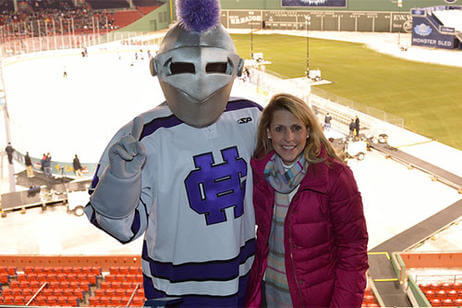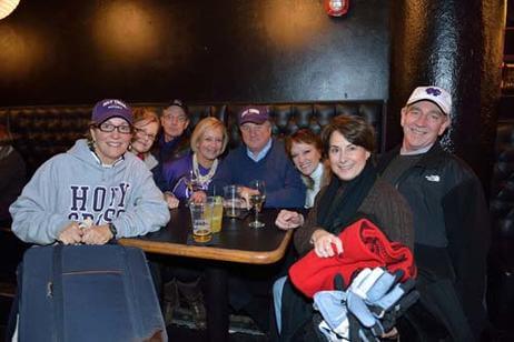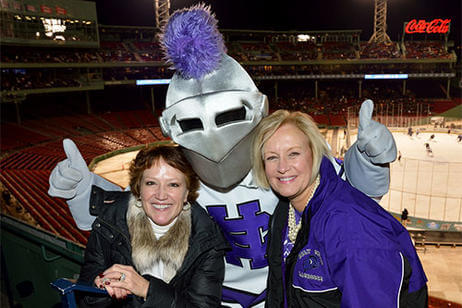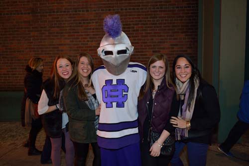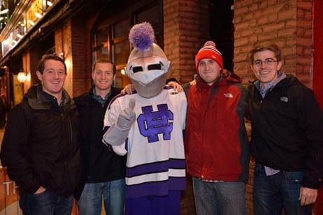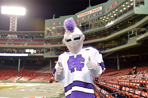 Before the game, 500 alumni, family and friends packed Bill's Bar and Lansdowne Pub for a pregame reception. Even The Crusader braved the cold and made his way to Fenway Park to greet the fans and cheer on the team. The event was hosted by the Crusader Athletics Fund, Holy Cross Clubs of Greater Boston and New Hampshire and Office of Alumni Relations.