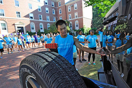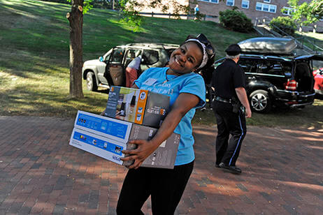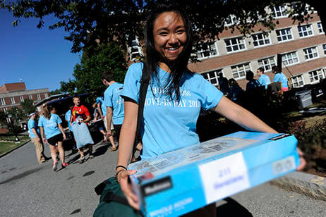 Members of the first-year class were greeted by 200 student leaders, athletic teams and alumni who helped move them into their residence halls.