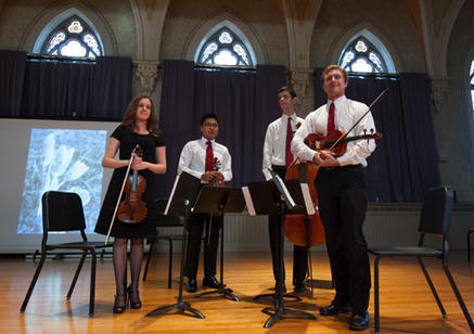 Celebrating the Arts at Holy Cross. The arts were on full display throughout the weekend. A variety of art, music and theatrical performances showcased an array of student talent, from a cappella singers to modern dance. It also provided an opportunity for visitors to experience the newly renovated Brooks Concert Hall.